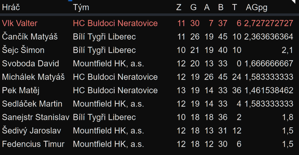 Třicátým gólem se Valter Vlk tři zápasy před koncem královehradecké skupiny Ligy mladších žáků osamostatnil na čele tabulky střelců, kterou vede s průměrem 2,72 branky na zápas před pronásledovateli z Liberce a Hradce Králové už o čtyři, respektive deset branek . V bodování se posunul na dělené 3. místo, přestože v sezoně odehrál o dva zápasy méně kvůli Světovému poháru motokár v Irsku. Více na Facebooku ValterVlkHockey a ValterVlk.